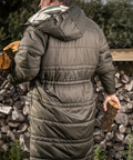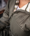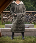 Materiaal: De buitenstof is gemaakt van nylon, dat duurzaam, licht en waterafstotend is. Hierdoor wordt de jas duurzamer en geschikt voor buitengebruik.